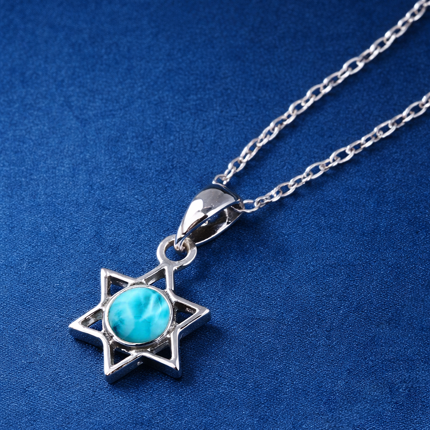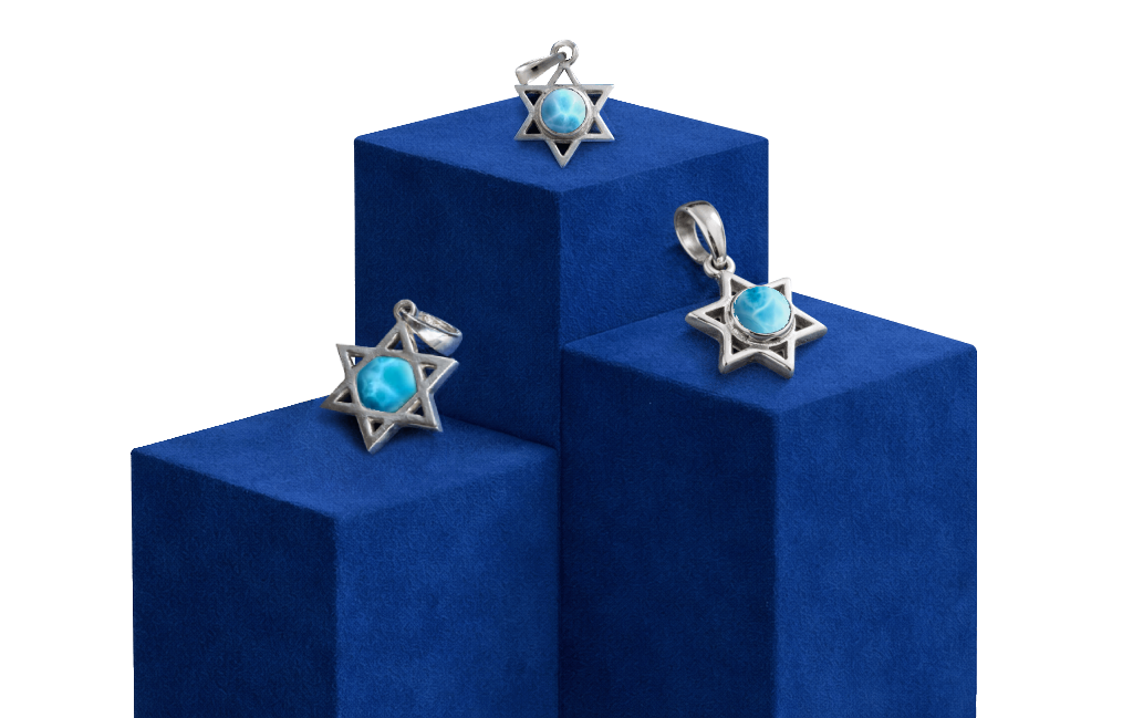 Esta colección de dijes en plata y piedra semipreciosa en larimar natural exclusiva de la República Dominicana, no es solo una joyería; es un recordatorio físico del favor divino y la protección que acompaña al pueblo de Israel.